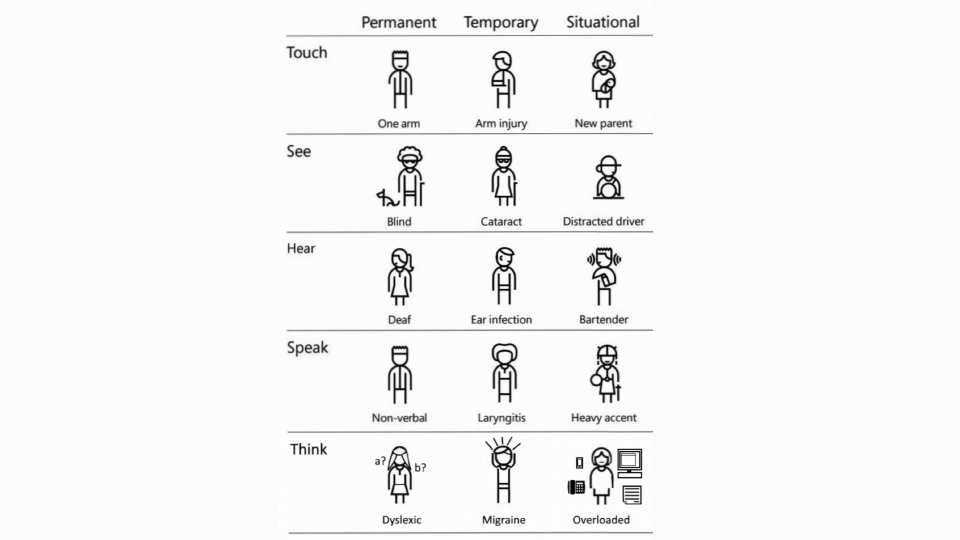 Permanent, temporary and situational disabilities