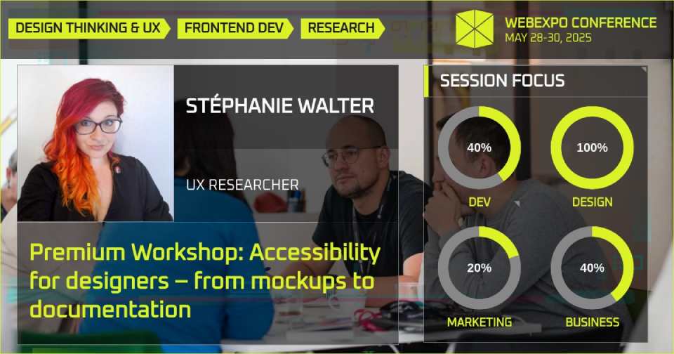 Are you ready for the upcoming European Accessibility Act? Stéphanie Walter, a well-known UX researcher and strategist specialising in inclusive design and accessibility will deliver a full-day Premium Workshop on May 30th at WebExpo 2025. Stephanie’s practical workshop is primarily for designers and project people who want to roll up their sleeves and produce best-in-class accessible mockups and improve team communication on accessibility. Learn more and secure your spot here.