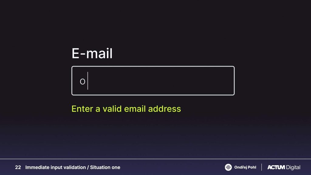 To counteract these challenges, Ondřej advocated for implementing validation after users submit forms, thus preventing early interruptions and allowing users to navigate without distraction. It’s like cutting someone off just after they’ve said their first word in a real-life conversation.