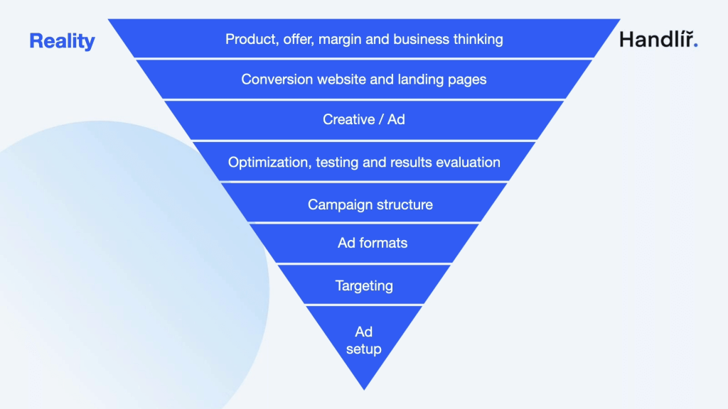 To illustrate this, Aneta presented a pyramid framework, highlighting that the biggest impact on campaign performance stems from the base—your product and website. Too often, marketers pour time into refining targeting settings or testing ad variations while overlooking whether their offer or user journey is compelling in the first place. Her message was clear: fix what matters most before fine-tuning the rest.