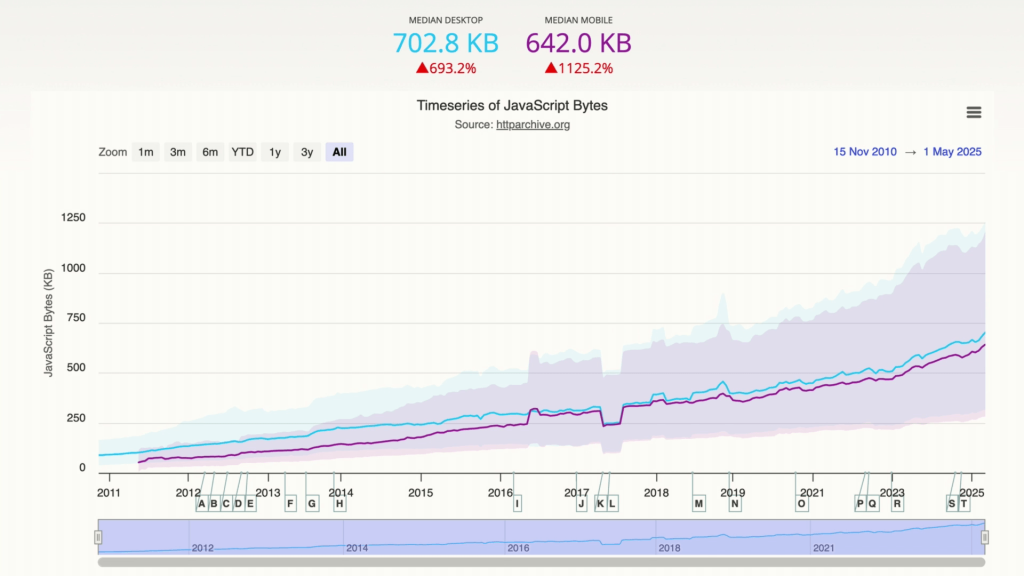 Despite advancements in technology, Tim warned against complacency. “Our expectations are not constant. As technology improves, so does our expectation of what that technology should be capable of,” he noted. The talk touched on the Jevons Paradox, reminding us that while more powerful devices and faster networks emerge, they invariably fuel an increase in consumption. Tim further illustrated this through a personal story: his son’s frustration with a slow-loading page exemplified how rising standards can render current performance benchmarks insufficient.