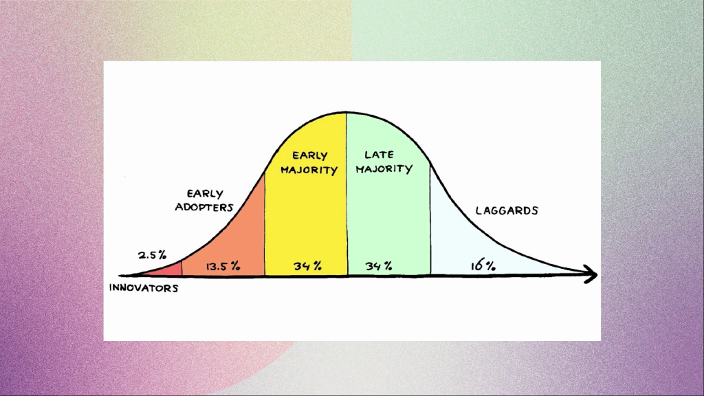 - Early majority – mainstream media starts talking about it, approximately half of the population is becoming aware of it