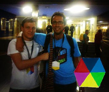 I remember Aarron Walter from Mailchimp, who received a standing ovation. I was also very motivated by John Vanhara, who talked about doing business in the US. He ended his talk with the sentence — ANYTHING GOES. I remember that I left that talk feeling really motivated, and that’s when my friend Honza Tinka came to me. He told me about some idea he had for an educational project. You can even see how excited we were in that moment in the picture.